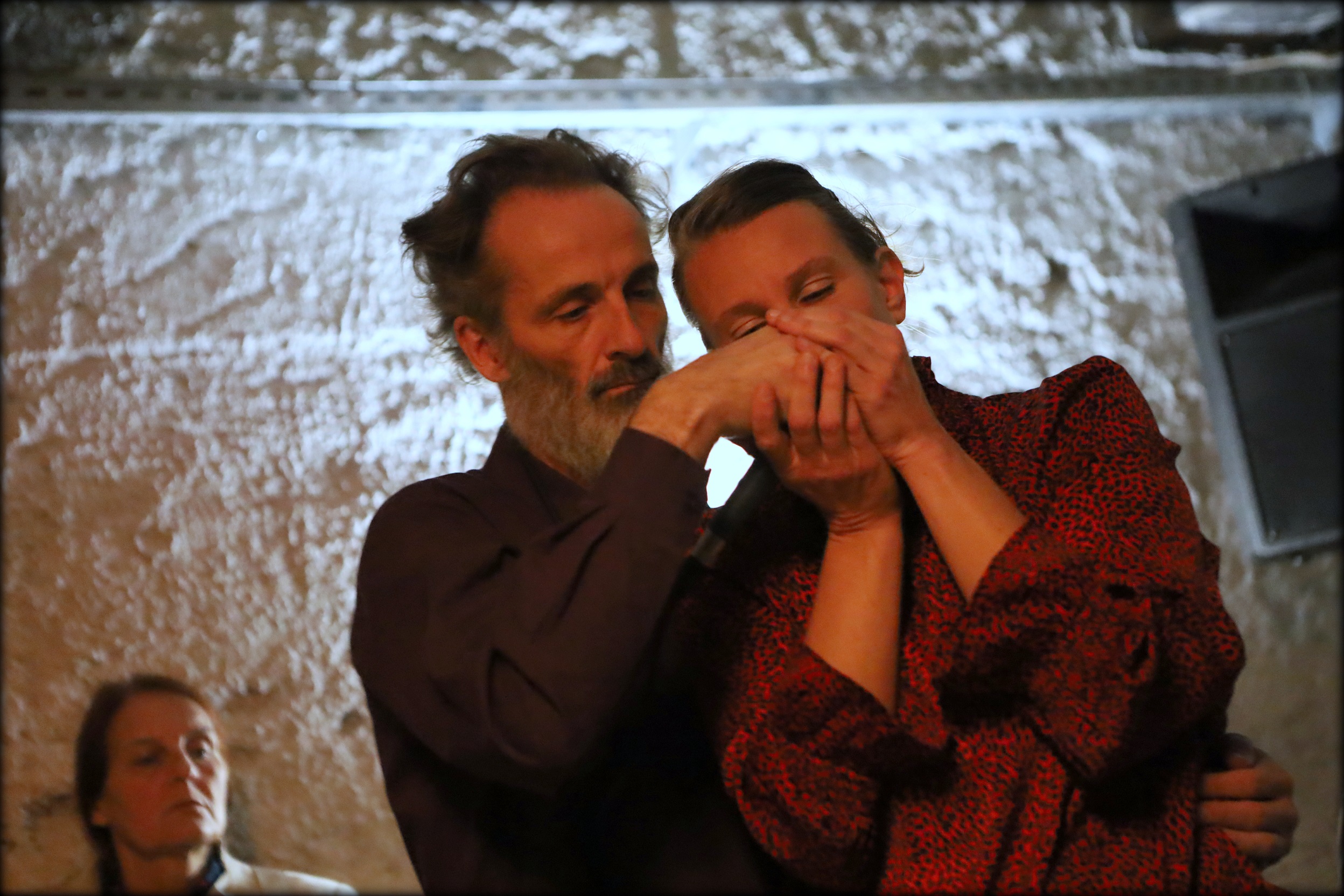 Kje je torej fermentiralo? V kleti. Stara mestna elektrarna – Elektro Ljubljana namreč 28. oktobra odpre druga vrata od teh, ki smo jih pričakovali, gledalce in gledalke pa posede v manjši in gotovo intimnejši kletni prostor. Odpadajoč omet, vidne kovinske palice v arhitekturnem okostju stavbe ter asimetričnost tunelov in kotičkov imajo močan atmosferičen učinek. Zadnjice namestimo na raznovrstne tabureje, stole in kavče, obrnjeni v različne smeri in veliko bolj skupaj, veliko bližje drug drugemu, kot če bi v vrstah z odmerjenimi razmiki, ki ustrezajo nogam in kakšnemu nahrbtniku, zrli drug drugemu v hrbet. Začetni potisk k zavedanju ostalih, ki skupaj z nami naseljujejo prostor, je torej izveden že s samo postavitvijo. Prisilno smo si blizu in na to se postopoma navajamo, pogoltnemo nelagodje ob glasnem prežvekovanju čigumija, prilagodimo glasnost dihanja.